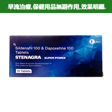 超級Stenagra Super power藍鑽特效必利勁雙效片 速效增硬持久助勃壯陽藥 Stenagra Super power威爾剛雙效 高含量版是一種兩強的成分是100mg枸櫞酸西地那非的混合成份,能同時改善勃起障礙和早洩。對於許多男人,勃起功能障礙、早洩攜起手來。這可能會導致很多困難,每一顆皆採取兩種不同的藥片。